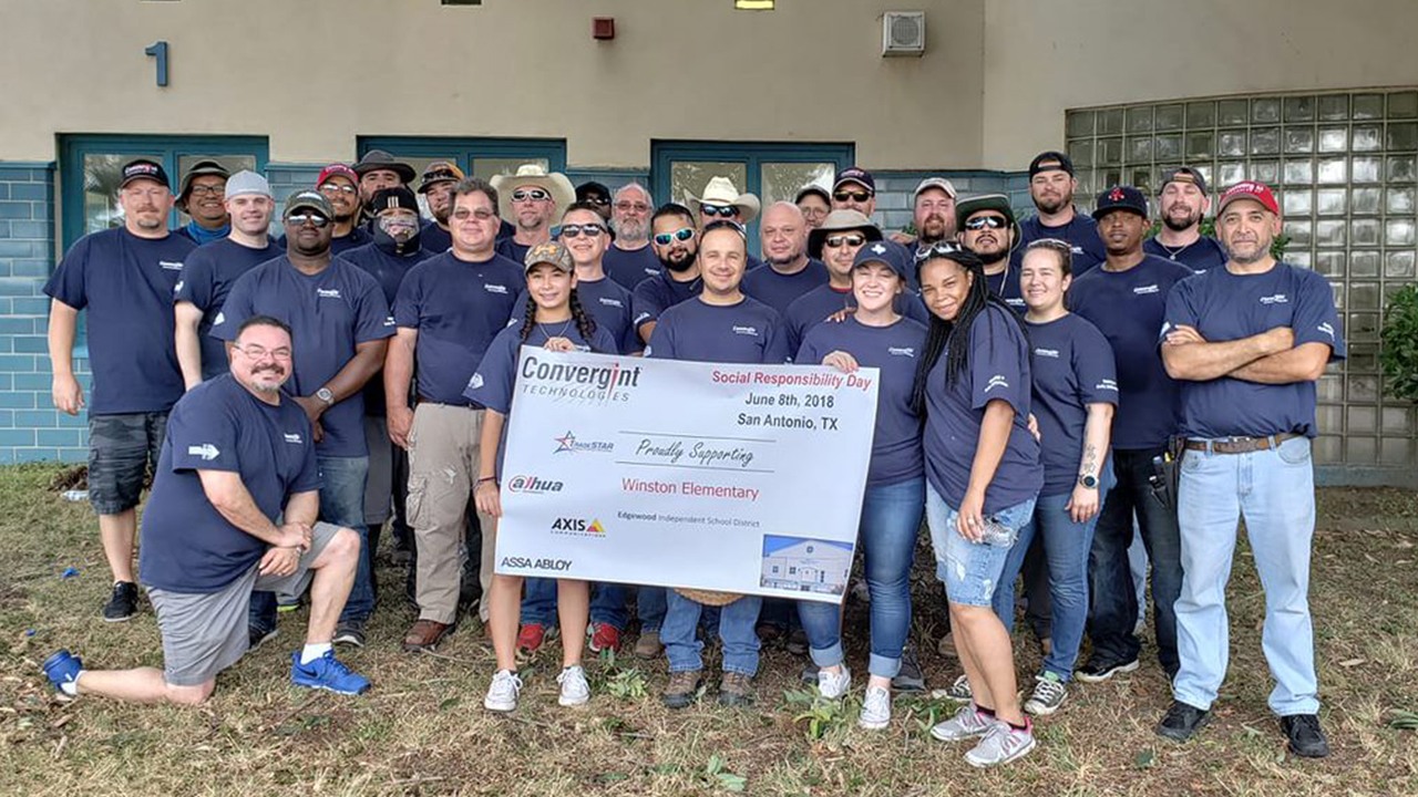 This year, we made a decision to launch our STEP Up (Secure, Train, Educate, and Protect) initiative under the umbrella of Convergint Social Responsibility Day, and 238 colleagues, from five regions stepped up at 8 local underserved schools. Convergint volunteer teams in Chicago, San Antonio, Austin, Cincinnati, and Atlanta provided and installed security cameras, tested and inspected fire alarm systems, updated antiquated systems, audited existing facilities, and provided security recommendations.