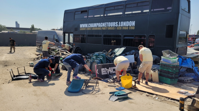 The team met Dan the founder of Busses4Homeless in the morning where he explained about the charity, the work undertaken, and what the Convergint colleagues needed to do. The colleagues were initially tasked with breaking down seating removed from a bus so that it could be segregated and disposed of accordingly. In addition, there was overall tidying of the site, and bagging rubbish from the busses. Later on, a truck arrived to take away the seating and rubbish, which the Convergint colleagues helped to load. Painting was then done inside a bus, of the railings and poles. The busses were painted gold and already looked a lot better. Dan was very appreciative of the work done, especially given the hot conditions. The work the Convergint colleagues did would have taken one or two people a lot longer to do. After the Convergint colleagues were done for the day,  Dan’s team were able to work on other aspects of refurbishment.
